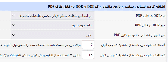 در نسخه ی جدید برنامه، می توان امکان درج هر کدام از این موارد را به صورت مجزا تنظیم کرد. در ضمن می توان این گزینه ها را به صورت اختصاصی برای هر نسخه نشریه تنظیم کرد. امکان تنظیم عمومی در مرکز تنظیم بخش "تنظیمات اصلی سامانه نشریات" فراهم است. برای تنظیم در هر نسخه نیز هنگام افزودن یا ویرایش نسخه ها می توانید این کار را انجام دهید.